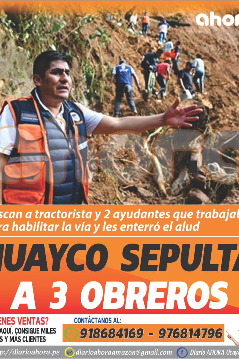 Leer másBuscan a tractorista y 2 ayudantes que trabajaban para habilitar la vía y les enterró el alud HUAYCO SEPULTA A