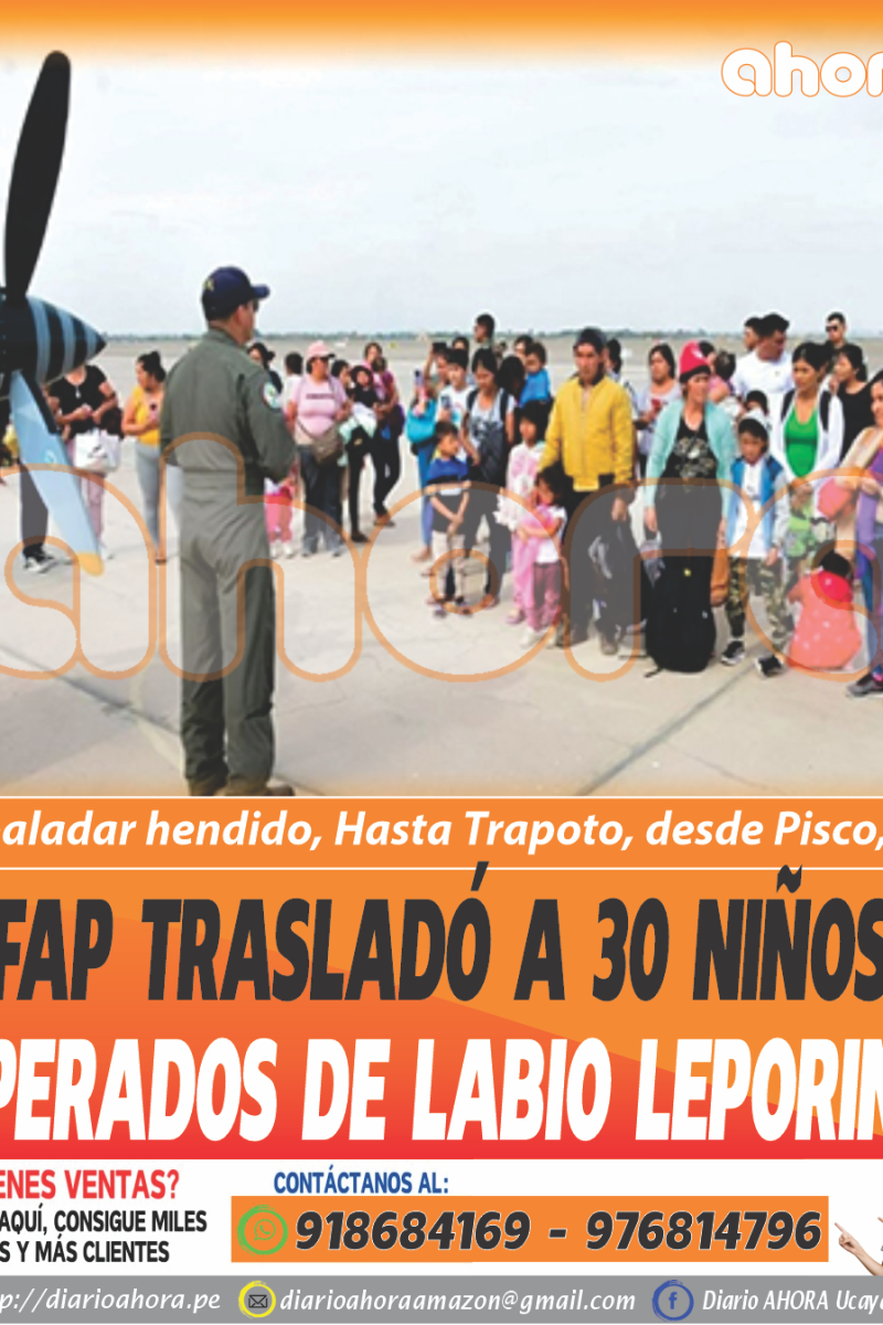 Leer másY paladar hendido, Hasta Trapoto, desde Pisco,Ica FAP TRASLADÓ A 30 NIÑOS OPERADOS DE LABIO LEPORINO Lima, abr. 8.La Fuerza