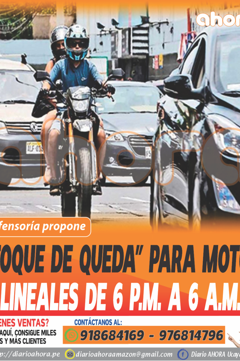 Leer másDefensoría propone “TOQUE DE QUEDA” PARA MOTOS LINEALES DE 6 P.M. A 6 A.M. Lima, abr. 8.Ante el aumento de