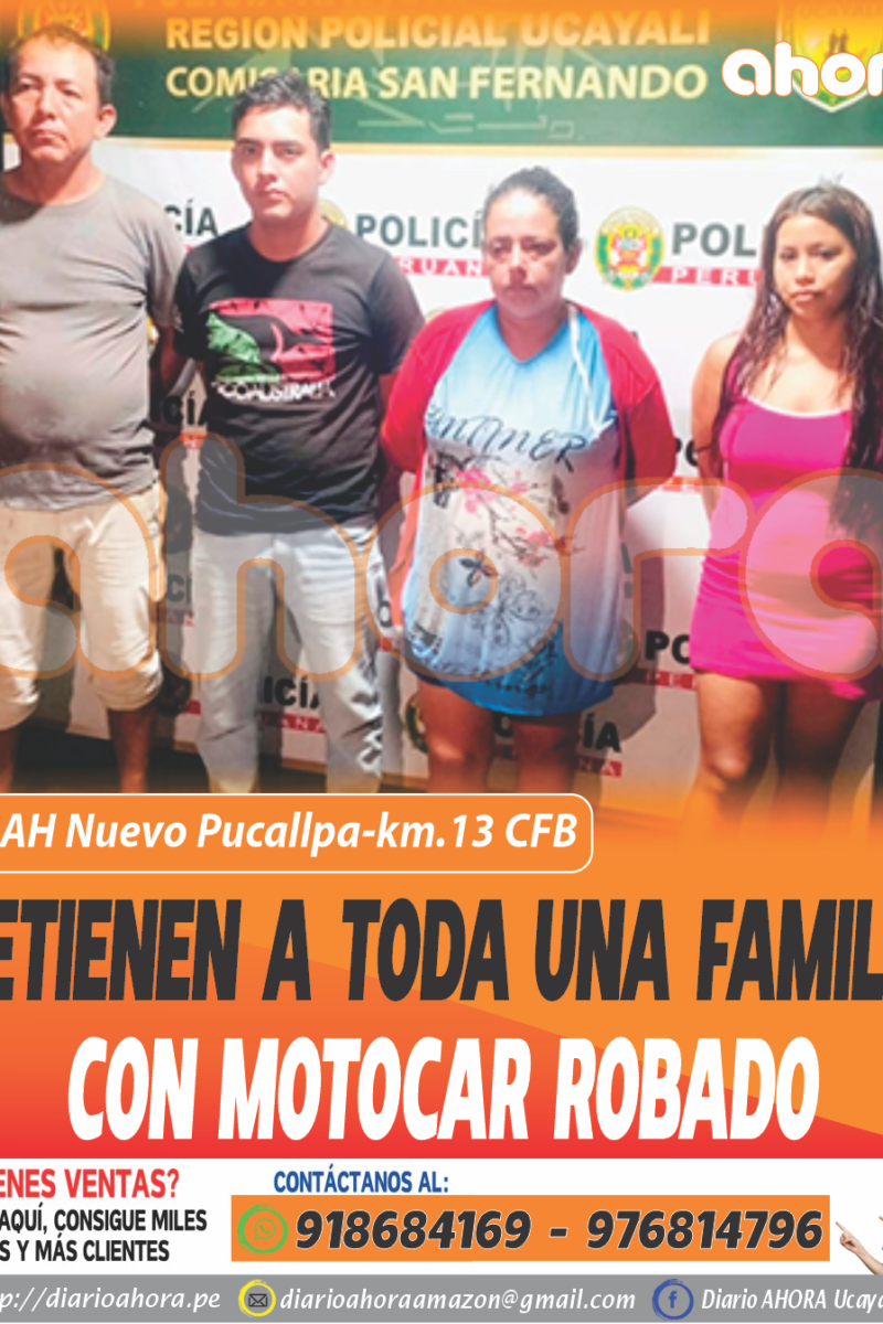 Leer másEn AH Nuevo Pucallpa-km.13 CFB DETIENEN A TODA UNA FAMILIA CON MOTOCAR ROBADO Cuatro integrantes de una familia, entre ellos