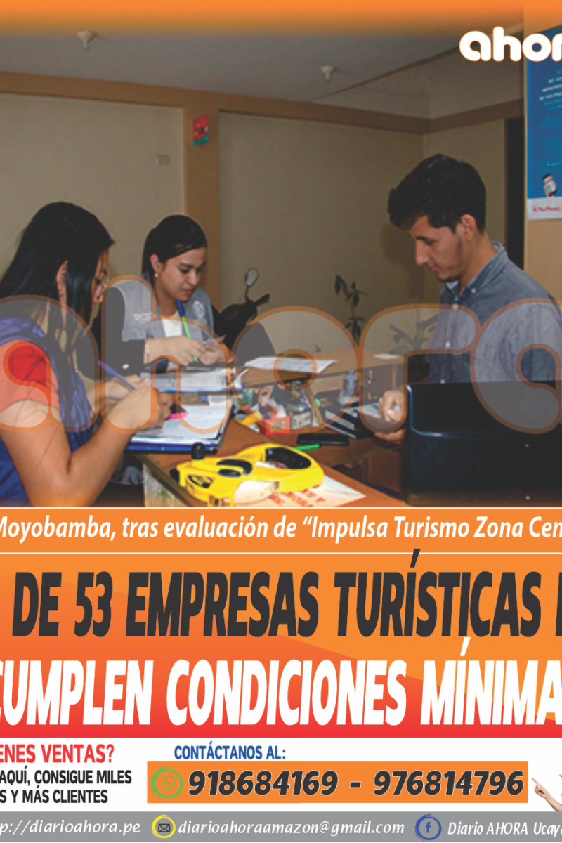 Leer másEn Moyobamba, tras evaluación de “Impulsa Turismo Zona Centro” 39 DE 53 EMPRESAS TURÍSTICAS NO CUMPLEN CONDICIONES MÍNIMAS El Gobierno
