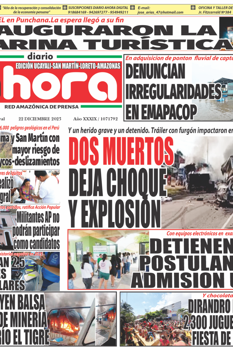PORTADA RD.PUCALLPA REVISTA DIGITAL EDICIÓN IMPRESA AHORA 22.12.25 febrero 20, 2026 admin 0 comentarios EDICIÓN DIARIO AHORA 22.12.2025 Leer más