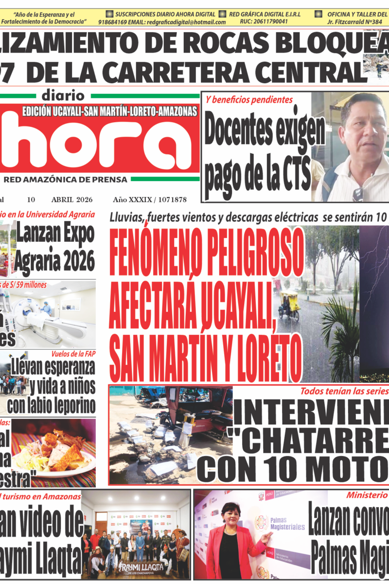 Leer másLluvias, fuertes vientos y descargas eléctricas se sentirán 10 y 11 de abril: FENÓMENO PELIGROSO AFECTARÁ UCAYALI, SAN MARTÍN Y