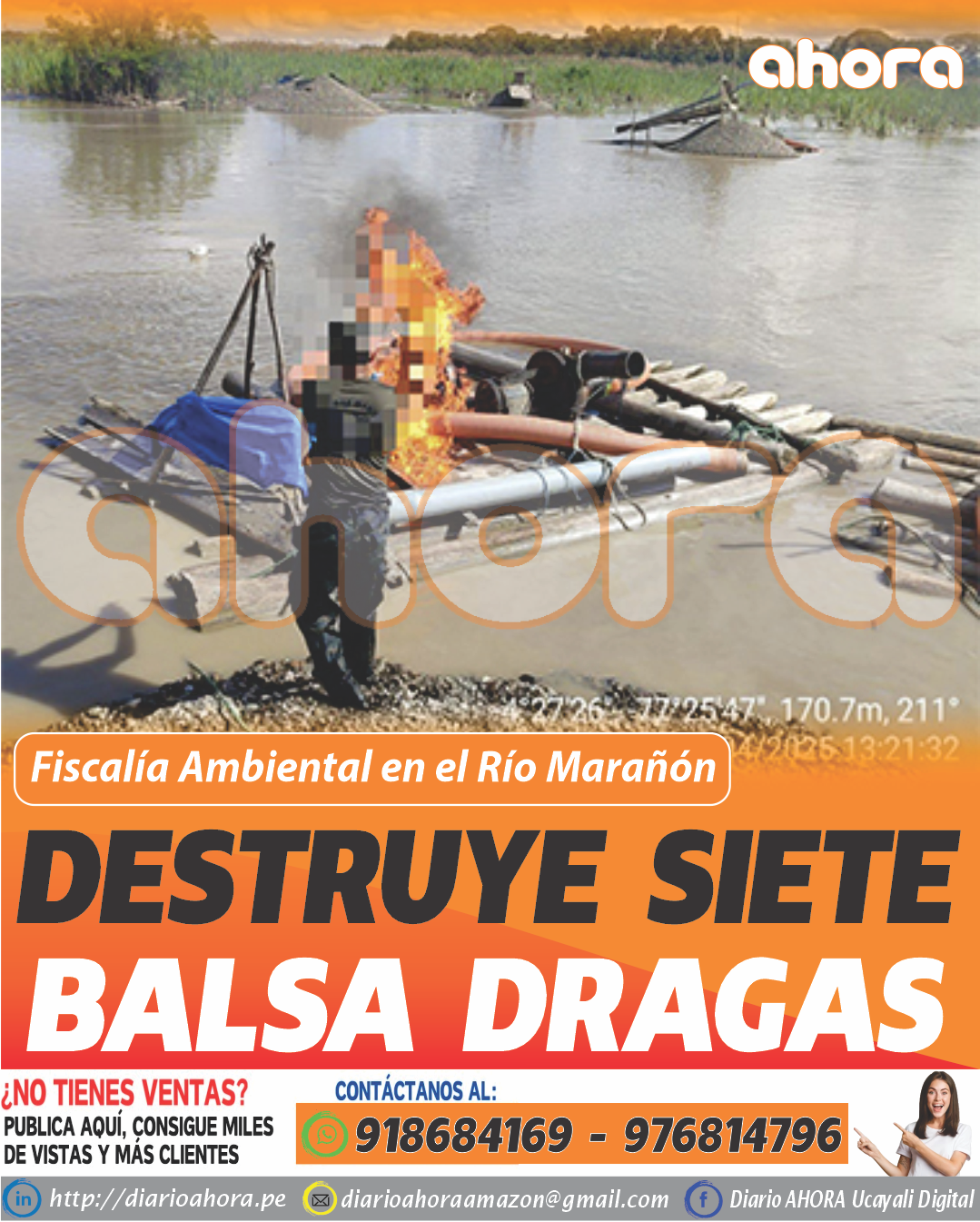 En una decidida acción contra la minería ilegal en la Amazonía, la Fiscalía Especializada en Materia Ambiental (FEMA) de Maynas, en colaboración con la Marina de Guerra del Perú – Capitanía de Puerto Yurimaguas, llevó a cabo un importante operativo de interdicción en el río Marañón, dentro de la jurisdicción de la provincia de Datem del Marañón (San Lorenzo). Este operativo culminó con la destrucción de siete balsas dragas empleadas en actividades ilícitas de extracción minera.