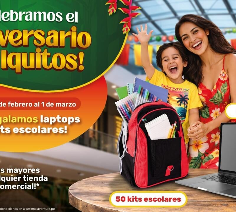 MALL AVENTURA IQUITOS CELEBRA EL ANIVERSARIO DE LA CIUDAD CON SORTEO DE LAPTOPS Y KITS ESCOLARES