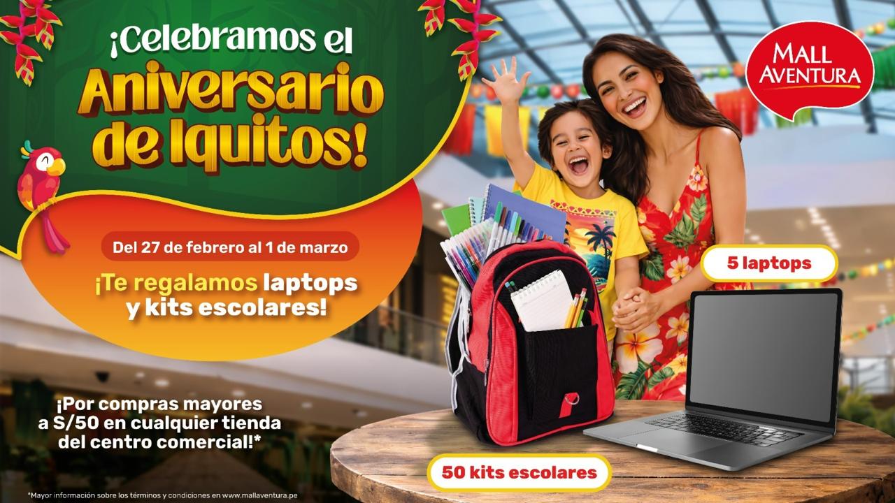 MALL AVENTURA IQUITOS CELEBRA EL ANIVERSARIO DE LA CIUDAD CON SORTEO DE LAPTOPS Y KITS ESCOLARES