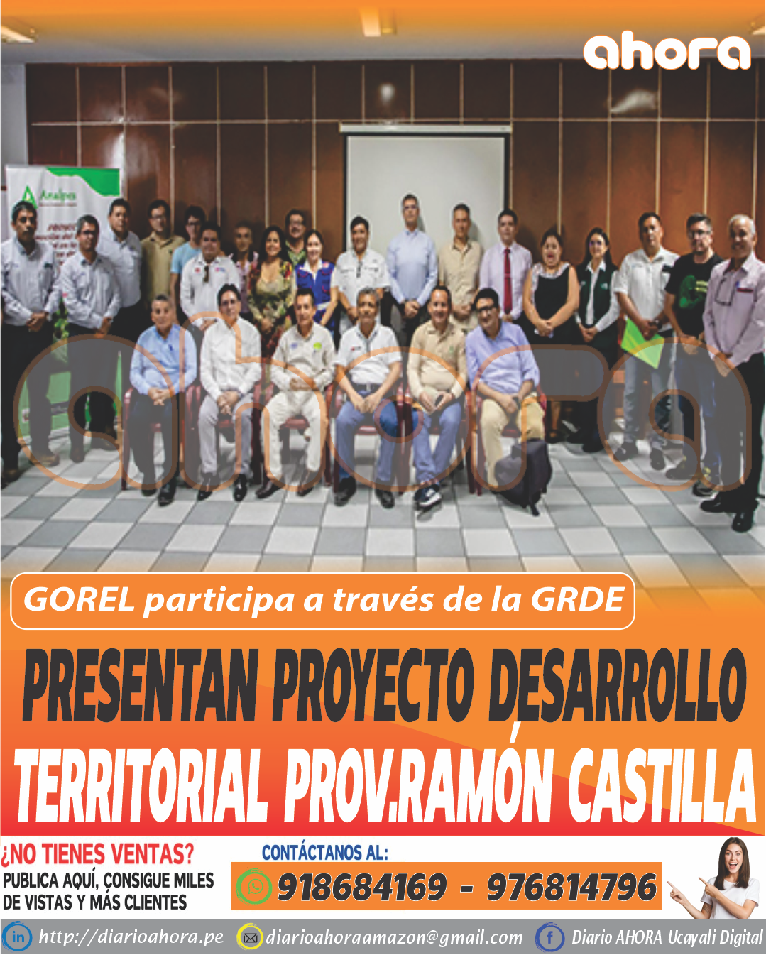 Por encargo del gobernador regional de Loreto, Dr. René Chávez Silvano, el especialista planificador Ing. Carlos García de la Gerencia Regional de Desarrollo Económico (GRDE) participó en la presentación del Proyecto de Desarrollo Territorial en la provincia fronteriza de Mariscal Ramón Castilla, una iniciativa promovida por el Ministerio de Relaciones Exteriores del Perú.