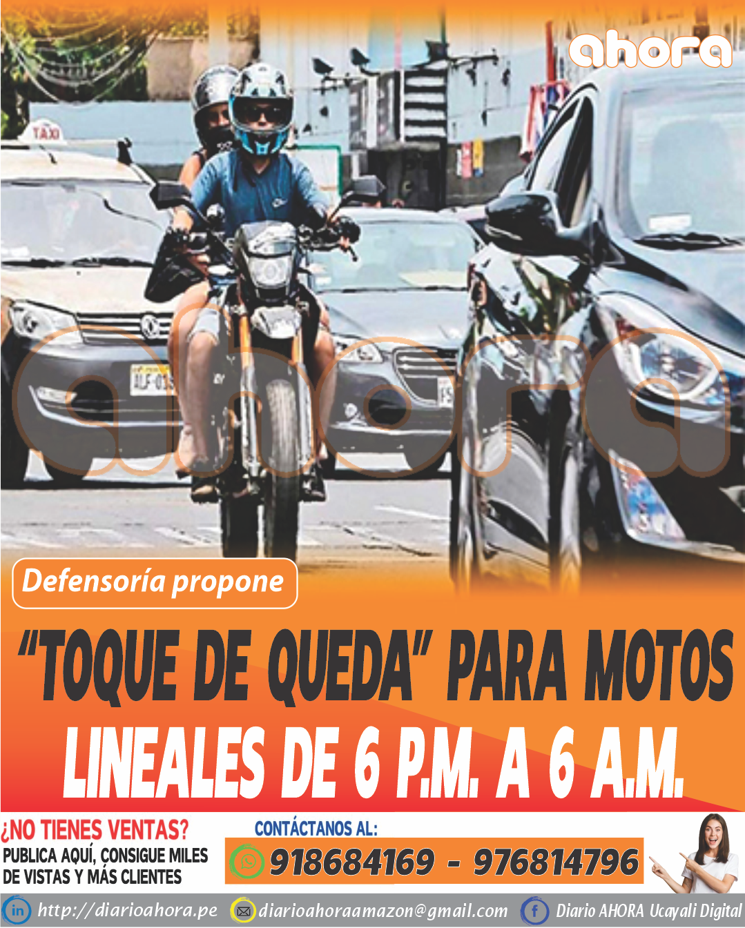 Lima, abr. 8.Ante el aumento de la delincuencia que, en su mayoría de casos, involucra a dos individuos a bordo de motocicletas lineales, la Defensoría del Pueblo propuso restringir el uso de estos vehículos desde las 18:00 horas hasta las 6:00 horas del día siguiente, impidiendo su tránsito fuera del rango de horas establecido, sin ninguna excepción.
