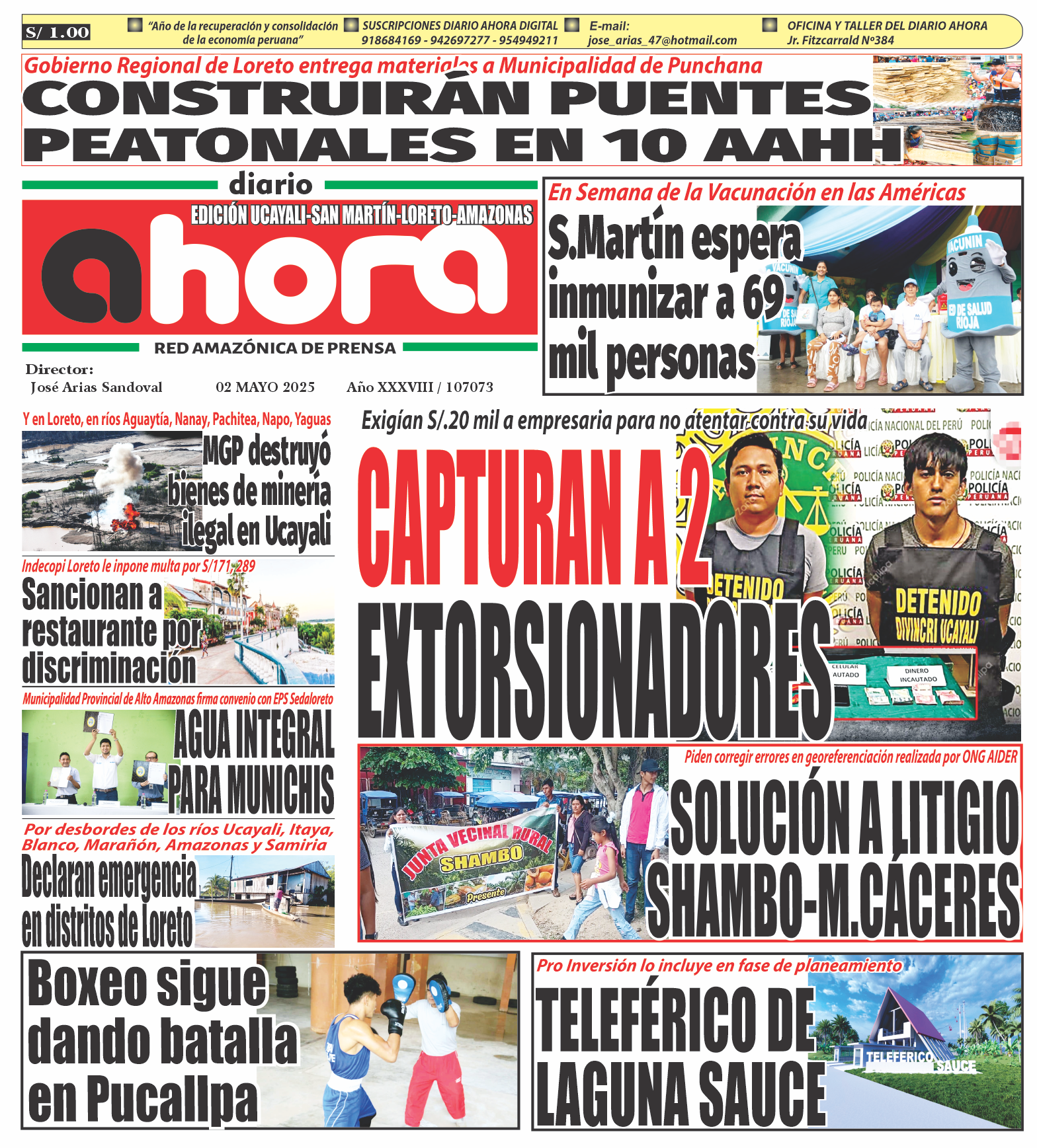 PORTADA RD.PUCALLPA REVISTA DIGITAL EDICIÓN IMPRESA AHORA 02.05.25 mayo 7, 2025 admin 0 comentarios EDICIÓN DIARIO AHORA 02.05.2025-