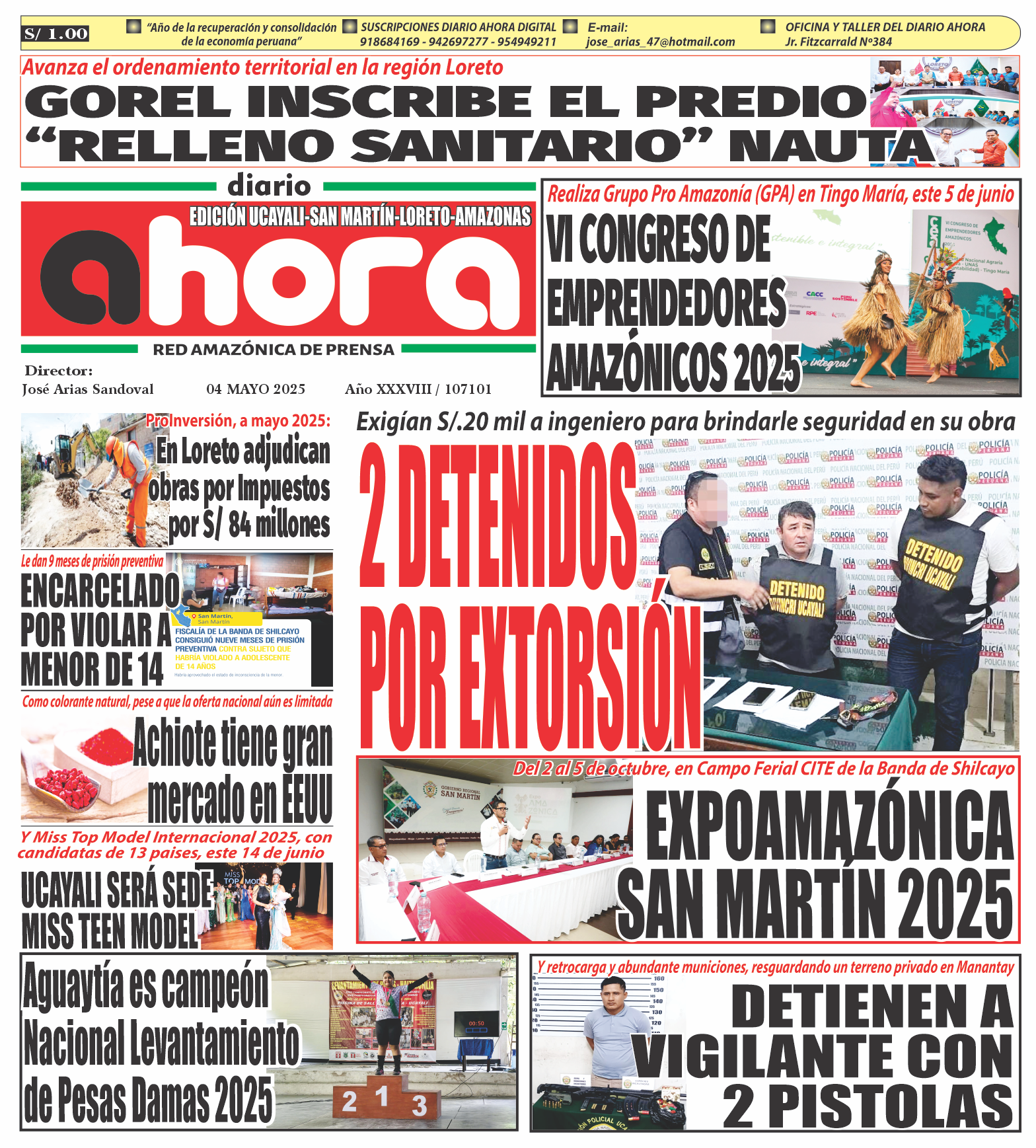 PORTADA RD.PUCALLPA REVISTA DIGITAL EDICIÓN IMPRESA AHORA 04.06.25 septiembre 18, 2025 admin 0 comentarios EDICIÓN DIARIO AHORA 04.06.2025