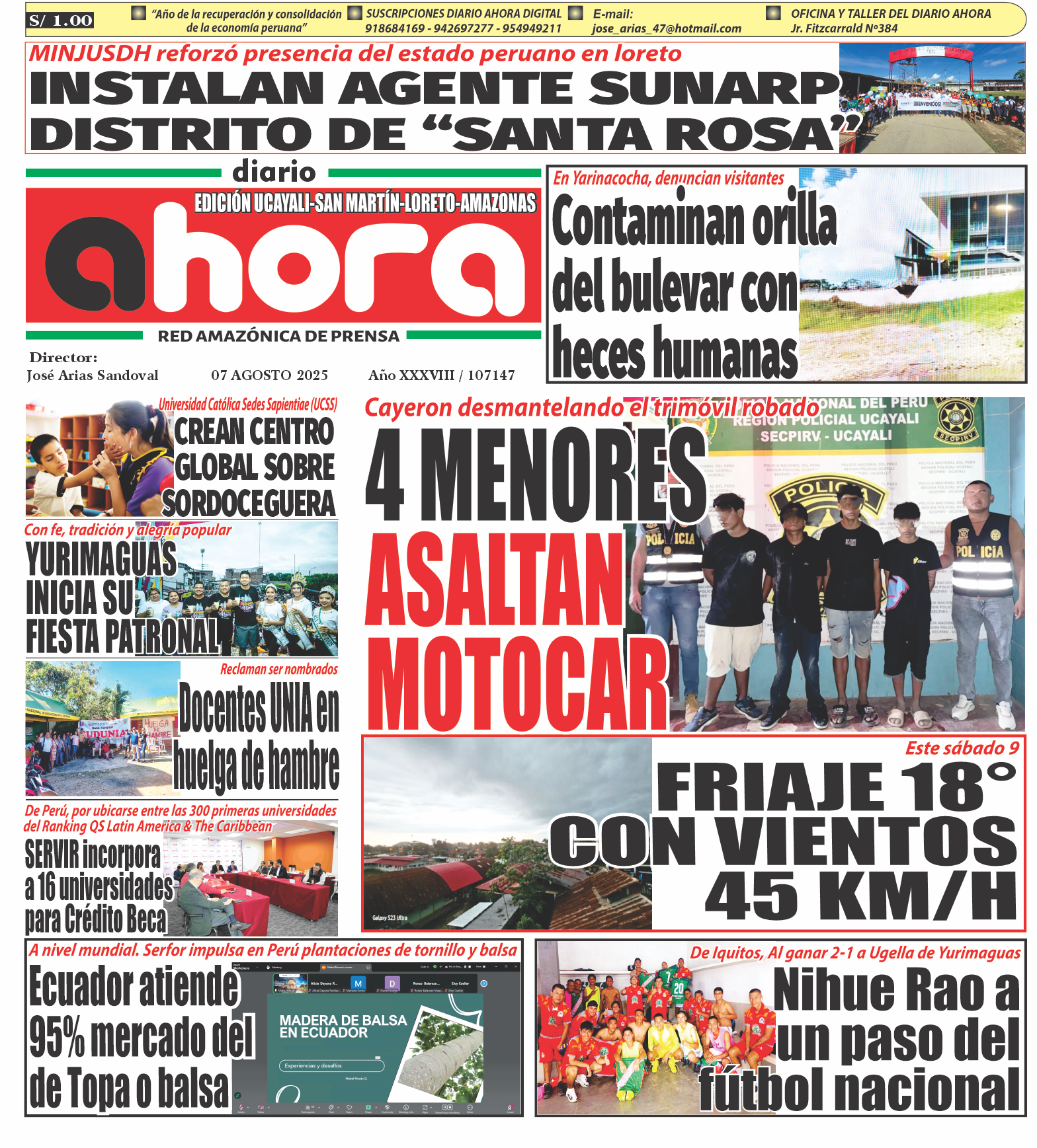 PORTADA RD.PUCALLPA REVISTA DIGITAL EDICIÓN IMPRESA AHORA 07.08.25 octubre 11, 2025 admin 0 comentarios DICIÓN DIARIO AHORA 07.08.2025
