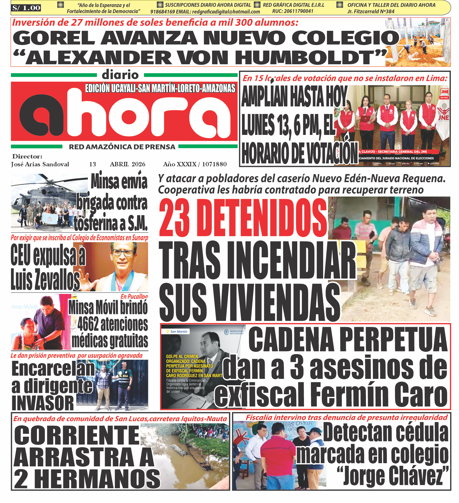 PORTADA RD.PUCALLPA REVISTA DIGITAL EDICIÓN IMPRESA AHORA 13.04.26 abril 13, 2026 admin 0 comentarios EDICIÓN DIARIO AHORA 13.04.2026