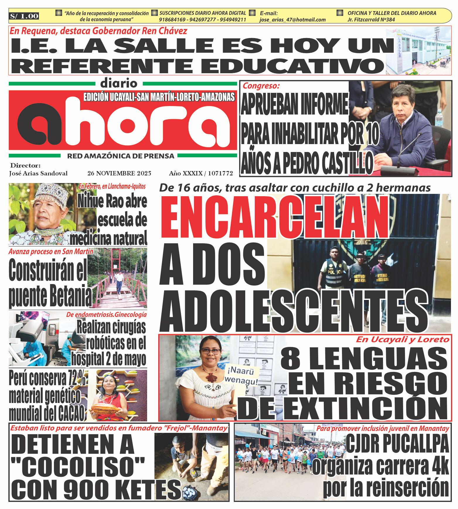 PORTADA RD.PUCALLPA REVISTA DIGITAL EDICIÓN IMPRESA AHORA 26.11.25 diciembre 11, 2025 admin 0 comentarios EDICIÓN DIARIO AHORA 26.11.2025