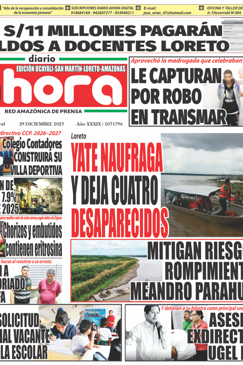 PORTADA RD.PUCALLPA REVISTA DIGITAL EDICIÓN IMPRESA AHORA 29.12.25 febrero 20, 2026 admin 0 comentarios EDICIÓN DIARIO AHORA 29.01.2026