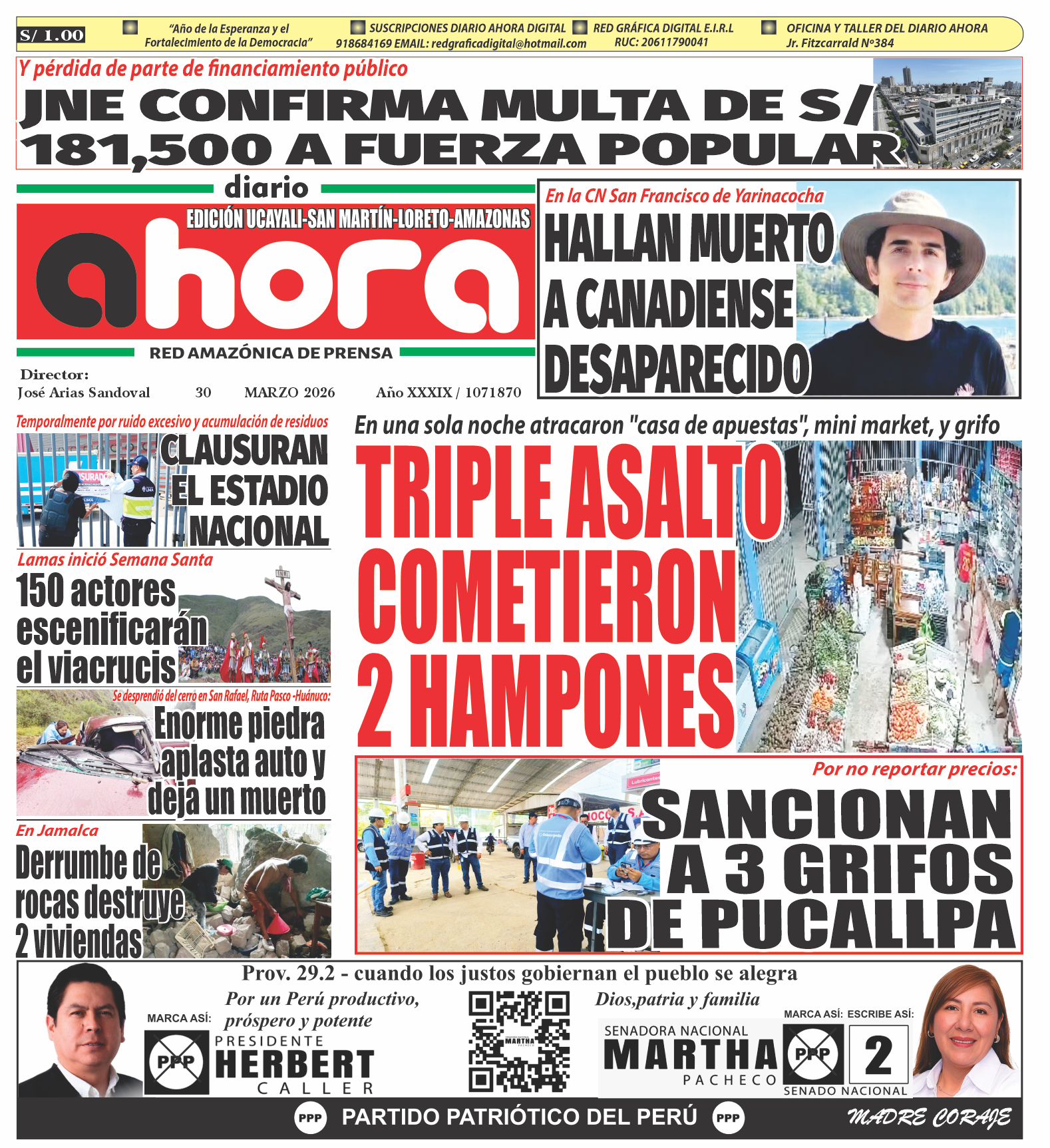 PORTADA RD.PUCALLPA REVISTA DIGITAL EDICIÓN IMPRESA AHORA 30.03.26 abril 9, 2026 admin 0 comentarios EDICIÓN DIARIO AHORA 30.03.2026