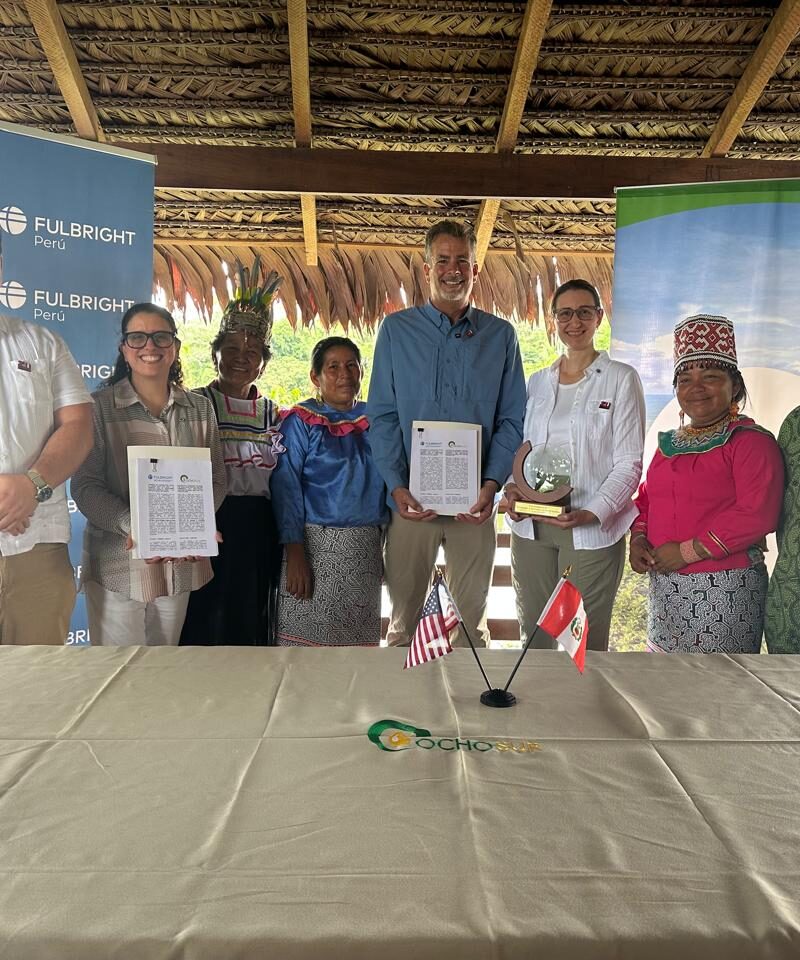 El galardón reconoce el compromiso de Ocho Sur con el fortalecimiento de la educación y la investigación científica en la región amazónica y destaca la colaboración de la empresa con la Comisión Fulbright, institución que este año conmemora siete décadas de labor académica en el país.