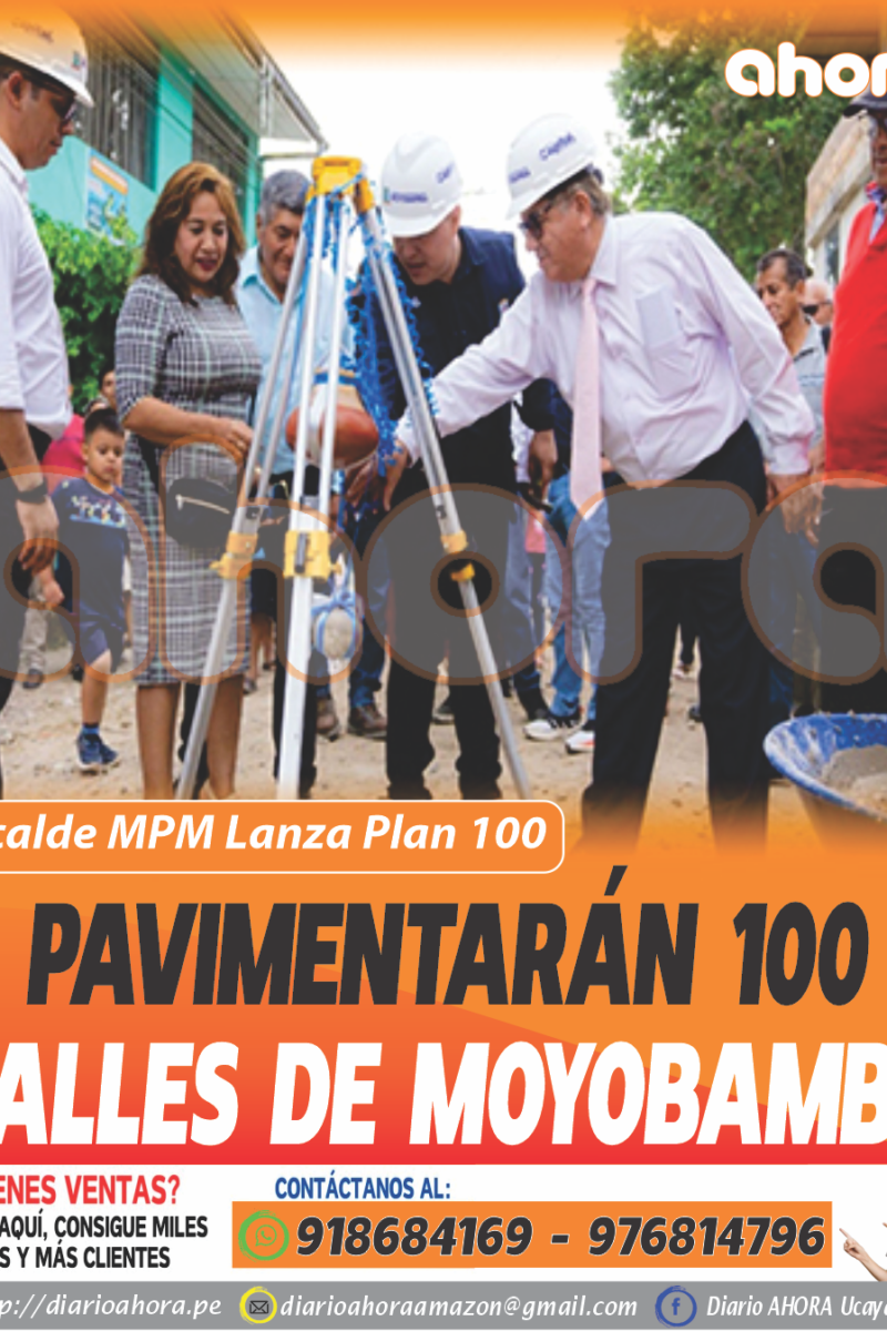 En la ceremonia, el burgomaestre anunció que la ejecución de estas obras está comprendidas dentro del “Plan 100”, que promueve la municipalidad provincial de Moyobamba que tiene como objetivo principal pavimentar 100 calles en la capital de la región San Martín. “Con el Plan 100 mejoraremos la infraestructura vial, reduciendo el polvo y lodo en temporadas de luvias, facilitando el tránsito vehicular y peatonal, y disminuyendo los tiempos de desplazamientos y accidentes”, manifestó.