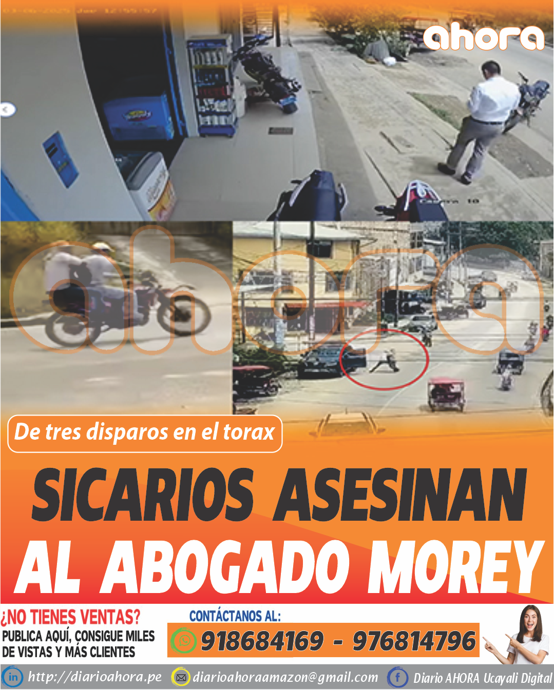 Con tres impactos de bala en el torax, dos sicarios acabaron con la vida del abogado Luís Felipe Morey Riva.El hecho ocurrió en horas de la tarde en la Av. Circunvalación de Tarapoto a pocos metros local de su estudio jurídico.