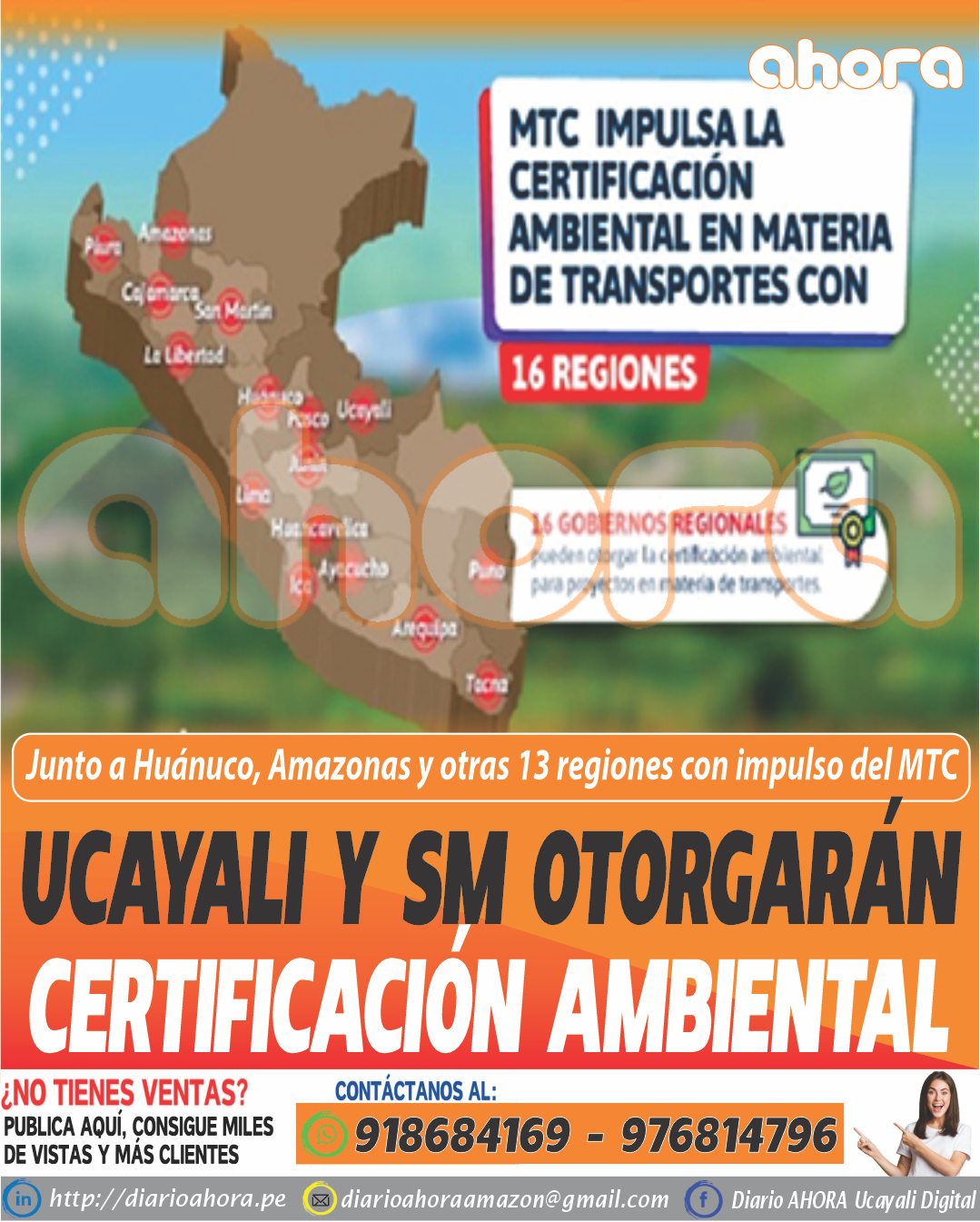 Lima, abr. 20.El Ministerio de Transportes y Comunicaciones (MTC), a través de la Dirección General de Asuntos Ambientales, continúa impulsando la descentralización ambiental en el sector Transportes. A la fecha, se han transferido competencias para la certificación ambiental a 16 gobiernos regionales: Amazonas, Arequipa, Ayacucho, Cajamarca, Huancavelica, Huánuco, Ica, Lima, Junín, La Libertad, Pasco, Puno, Piura, San Martín, Tacna y Ucayali.