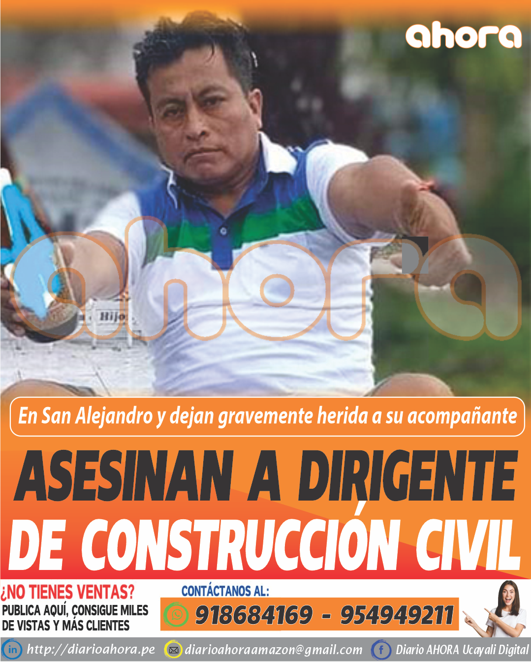 El hampón asesino también hirió de bala en la cintura lado izquierdo a Jeilly Fiorella Soria Alayo de 31 años, quien estaba en la reunión.Ambos, mal heridos, fueron auxiliados por los presentes y vecinos del lugar y  los trasladaron en mototaxis al centro de salud del distrito para que recibieran atención médica.