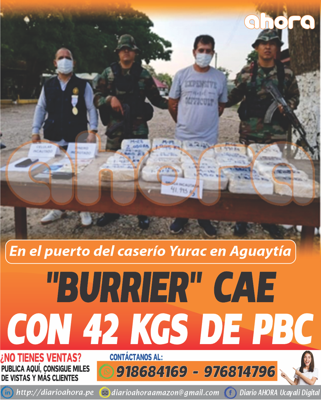 Luis Humberto Vásquez Camacho de 45 años, fue detenido  en horas de la tarde del fin de semana en inmediaciones del caserío Yurac, exactamente en su puerto, distrito Aguaytía, provincia de Padre Abad, departamento de Ucayali.