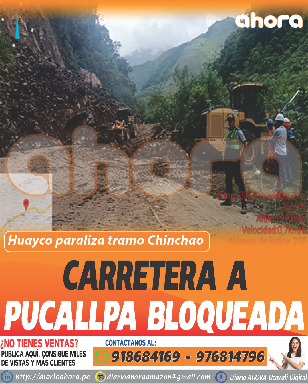 Un huayco registrado en el Kilómetro 88 de la Carretera Transversal Ruta PE-18A, en la zona de León Pampa, distrito de Chinchao, provincia y departamento de Huánuco, ha generado el bloqueo total de la vía en ambos carriles. El deslizamiento, provocado por factores climatológicos, ocurrió a las 12:33 horas del domingo 9 de marzo de 2025.