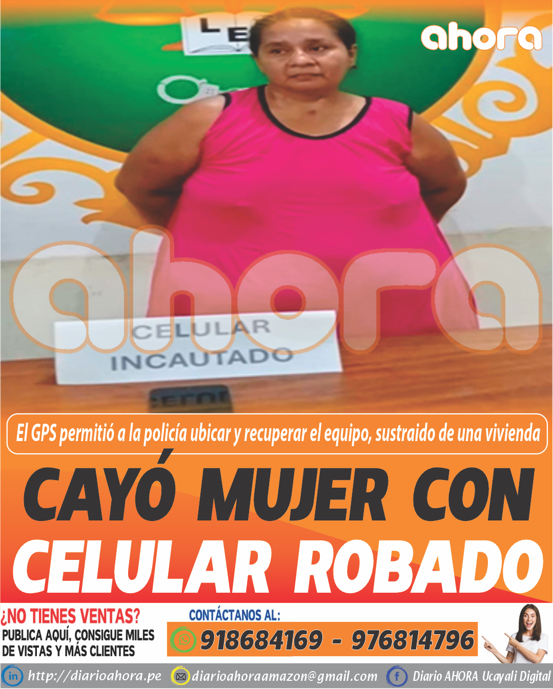 Una mujer identificada como Blanca Lourdes García Díaz de 44 años, fue intervenida y detenida en su domicilio por los agentes de la Divincri-Pucallpa, al hallar en su poder un teléfono celular robado.