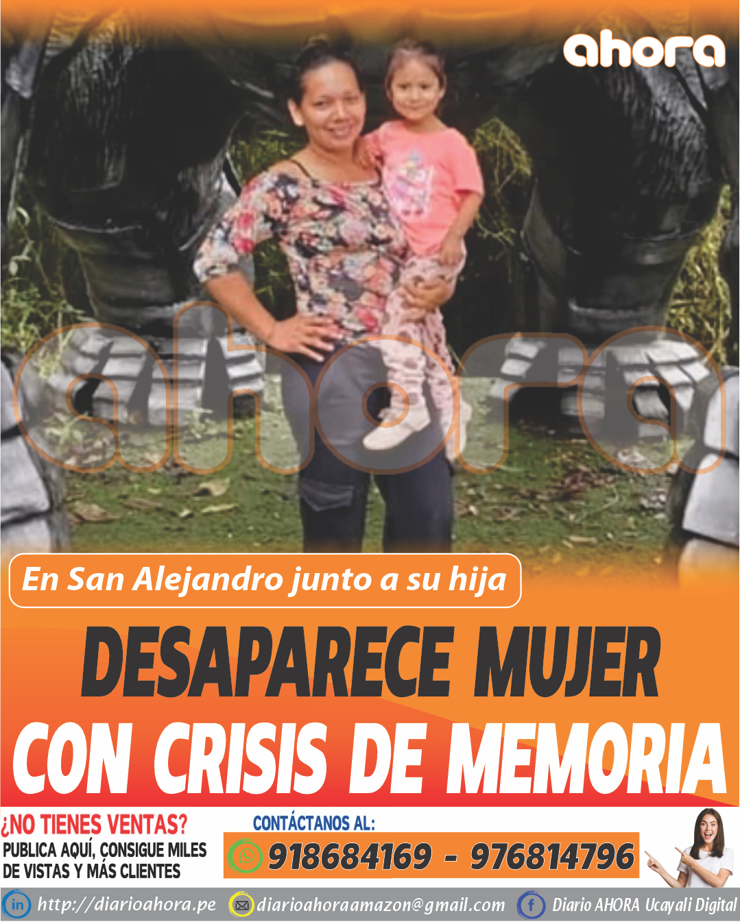 Madre e hija salieron de su domicilio en la junta vecinal Hirei, distrito de San Alejandro, provincia de Padre Abad. Desde entonces su paradero es un total misterio.