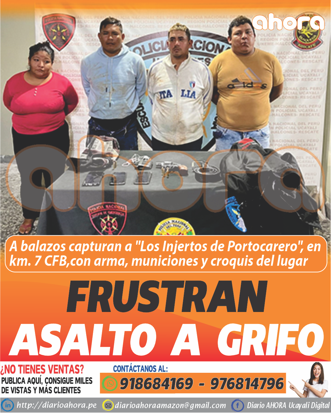 Efectivos  del Grupo de Intervenciones Rápidas (GIR) del Escuadrón Verde-Pucallpa, en coordinación con los agentes de la Oficina Regional de Inteligencia (ORI)-Ucayali, frustraron el atraco. Entre los detenidos hay una mujer que integraba la banda denominada «Los Injertos de Portocarrero».