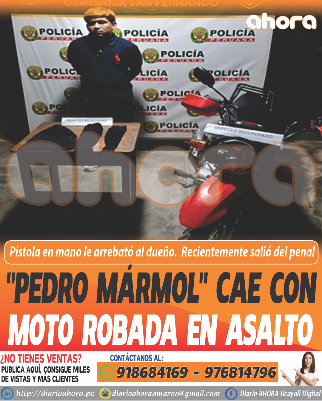 Ángelo Jilmar Martínez, de 23 años, fue capturado ayer cerca de la media noche en inmediaciones del campo deportivo de la urbanización municipal, distrito de Manantay, cuando merodeaba por el lugar en actitud sospechosa a bordo de una motocicleta nueva.