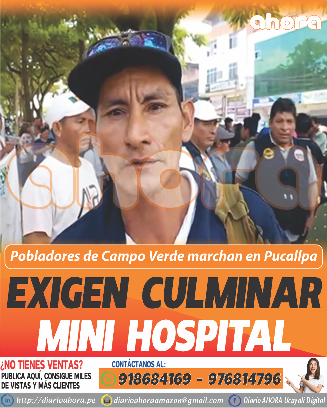 “El pueblo de Campo Verde está presente para exigirle al gobernador regional la culminación del centro de salud. Estamos aquí para decirle que los campoverdinos no nos chupamos el dedo y que ya basta de abusos”, expresó Ylder Resurrección Tuanama, presidente del Frente de Defensa de Campo Verde.