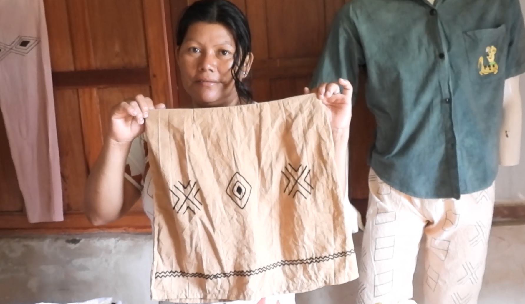 Desde su hogar, construido con materiales propios de la zona, Carolina elabora piezas únicas utilizando tintes naturales extraídos de la biodiversidad amazónica. Su trabajo no solo mantiene viva la tradición, sino que también incorpora innovación, al confeccionar prendas como pantalones, chalecos y bolsos con diseños modernos que conservan la iconografía del pueblo Kakataibo.