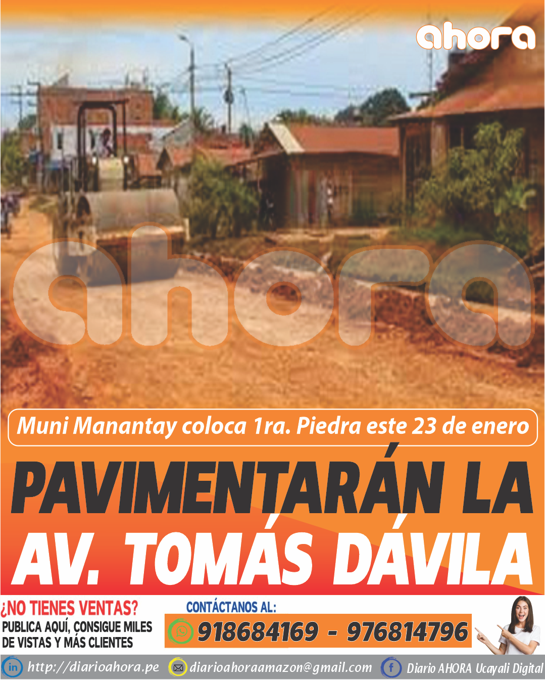 La municipalidad de Manantay pavimentará la avenida Tomás Dávila; tramo entre las vías Túpac Amaru y Ramiro Priale, con un presupuesto de más de 8 millones de soles.