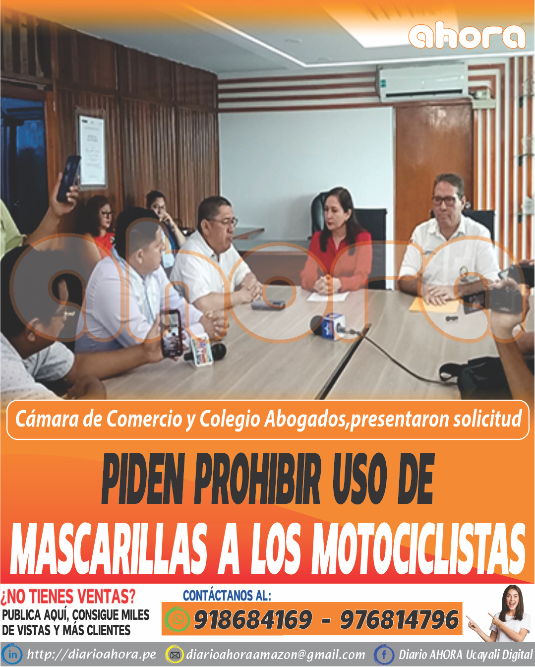 El decano del Colegio de Abogados de Ucayali, Billy Allan Eyzaguirre Tuesta, y al presidente de la Cámara de Comercio, Industria y Turismo de Ucayali, Rubén Cerna Leveau solicitaron aprobar una nueva ordenanza que prohíbe el uso de pasamontañas o mascarillas que dificulten la identificación de los conductores de motocicletas.